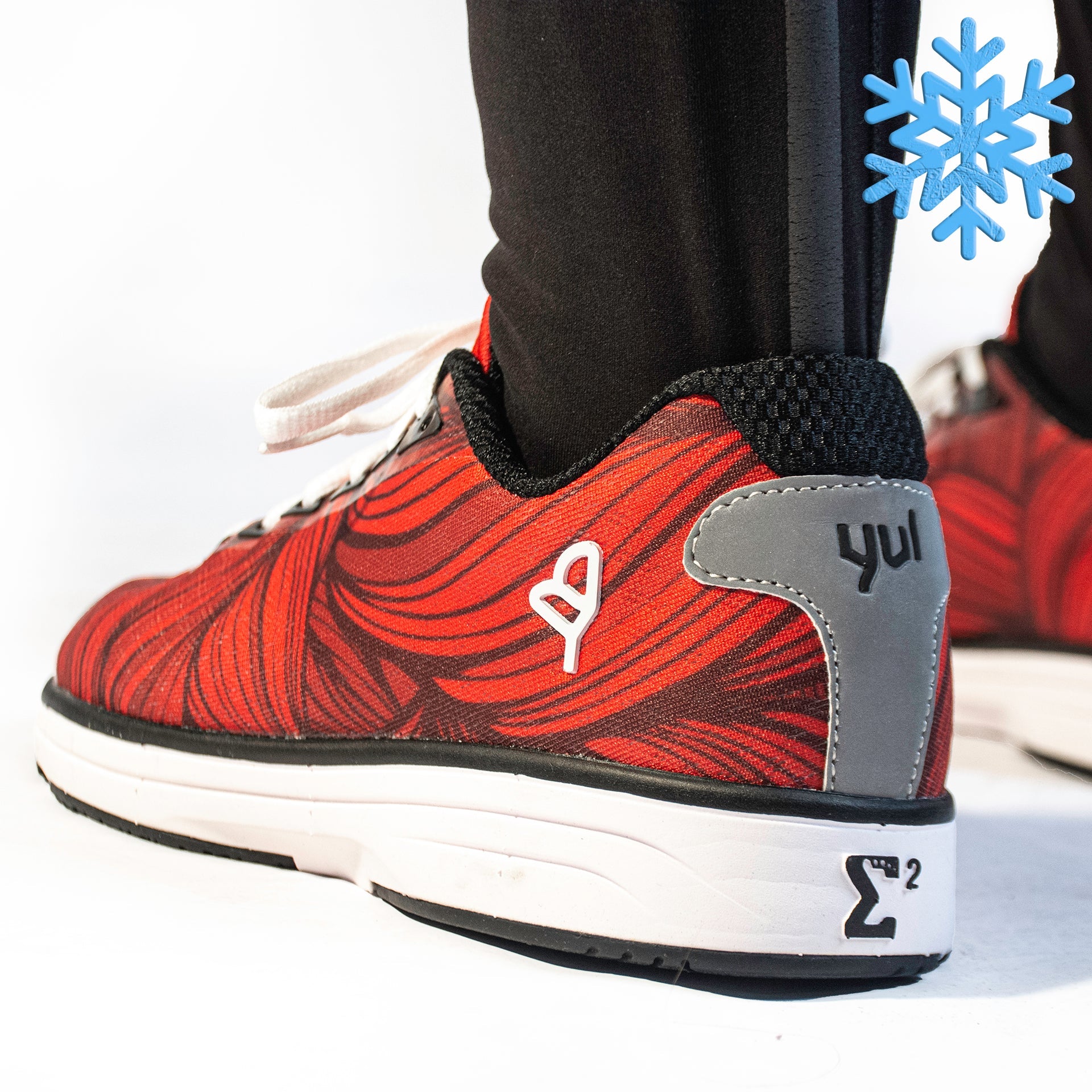 This running shoe is waterproof with Vibram Winter Rubber Soles. It is specificaly designed for the winter and cold conditions.